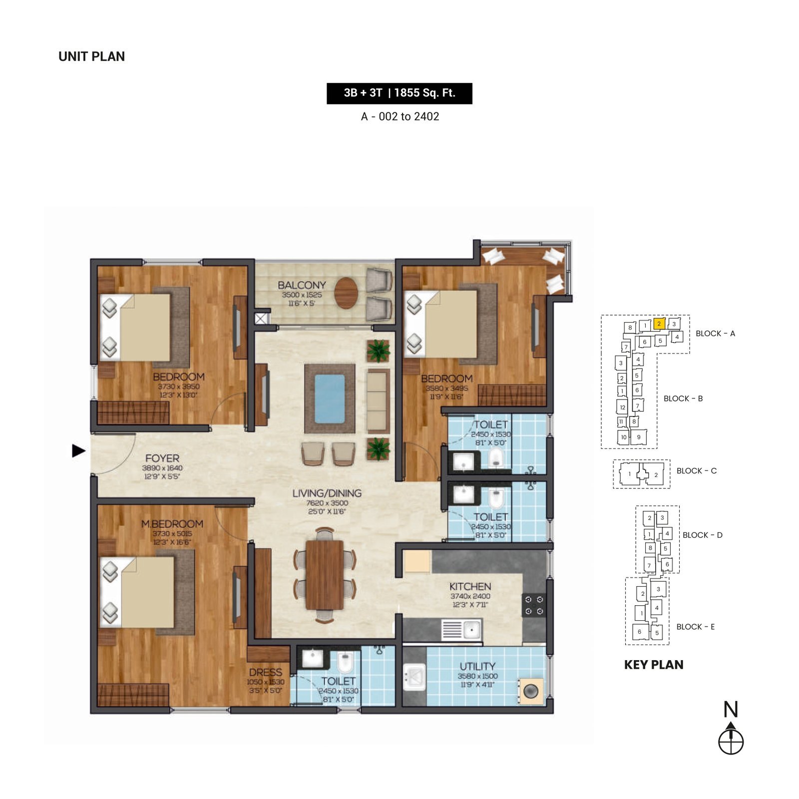 Foundation & Super structure: RCC Shear Wall Structural System, Seismic zone II Compliant